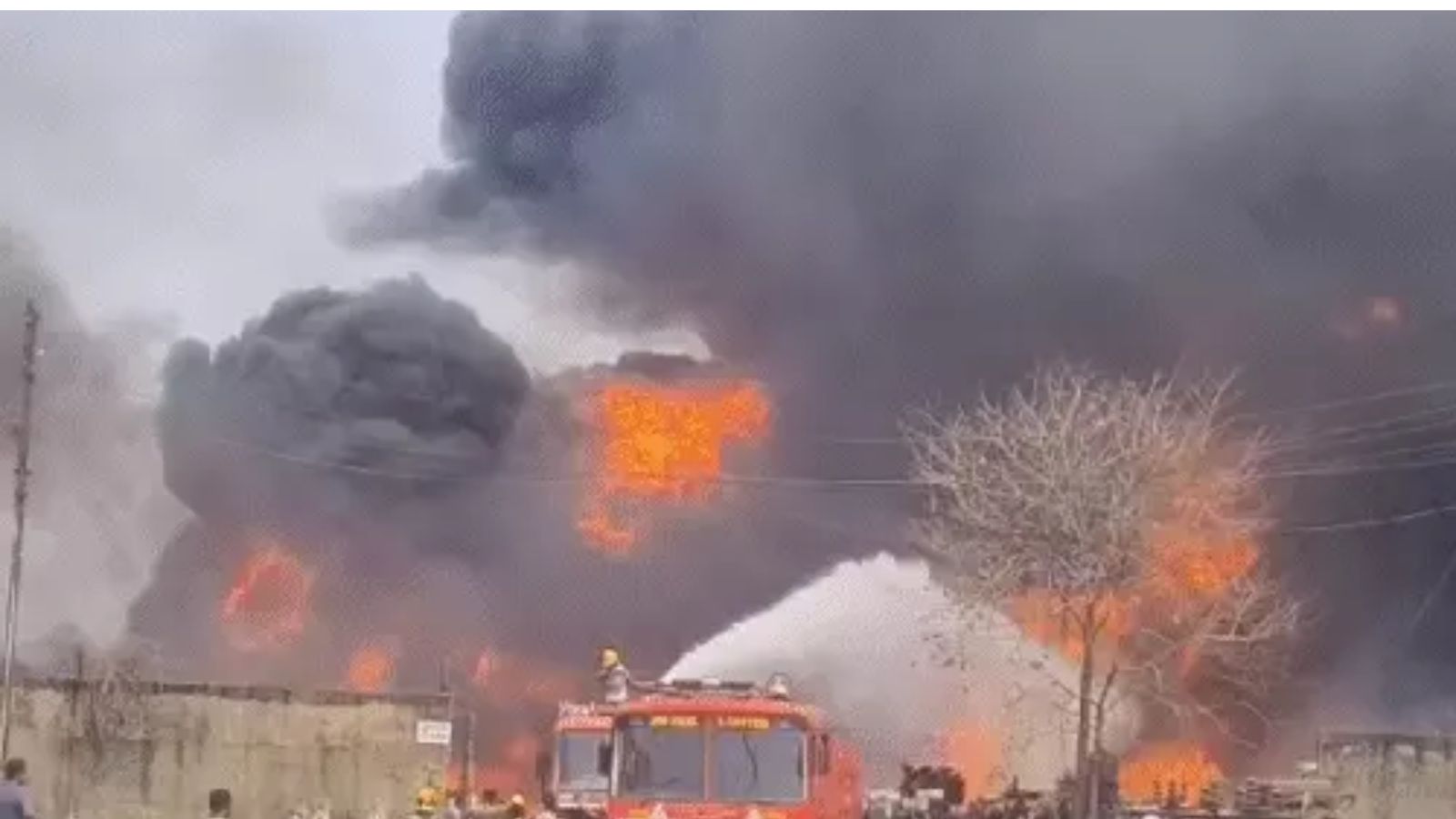 The fire has been brought under control to a great extent, but smoke is still visible from a distance. According to the information, a fire broke out in the transformer store area of the electricity department behind Gajanand Puram Colony on Kotra Road at around 10 am on Monday. Within a short time, the fire took a terrible form. Smoke was visible from a distance. As soon as the information was received, the fire brigade vehicle reached the spot and the work of extinguishing the fire was started.