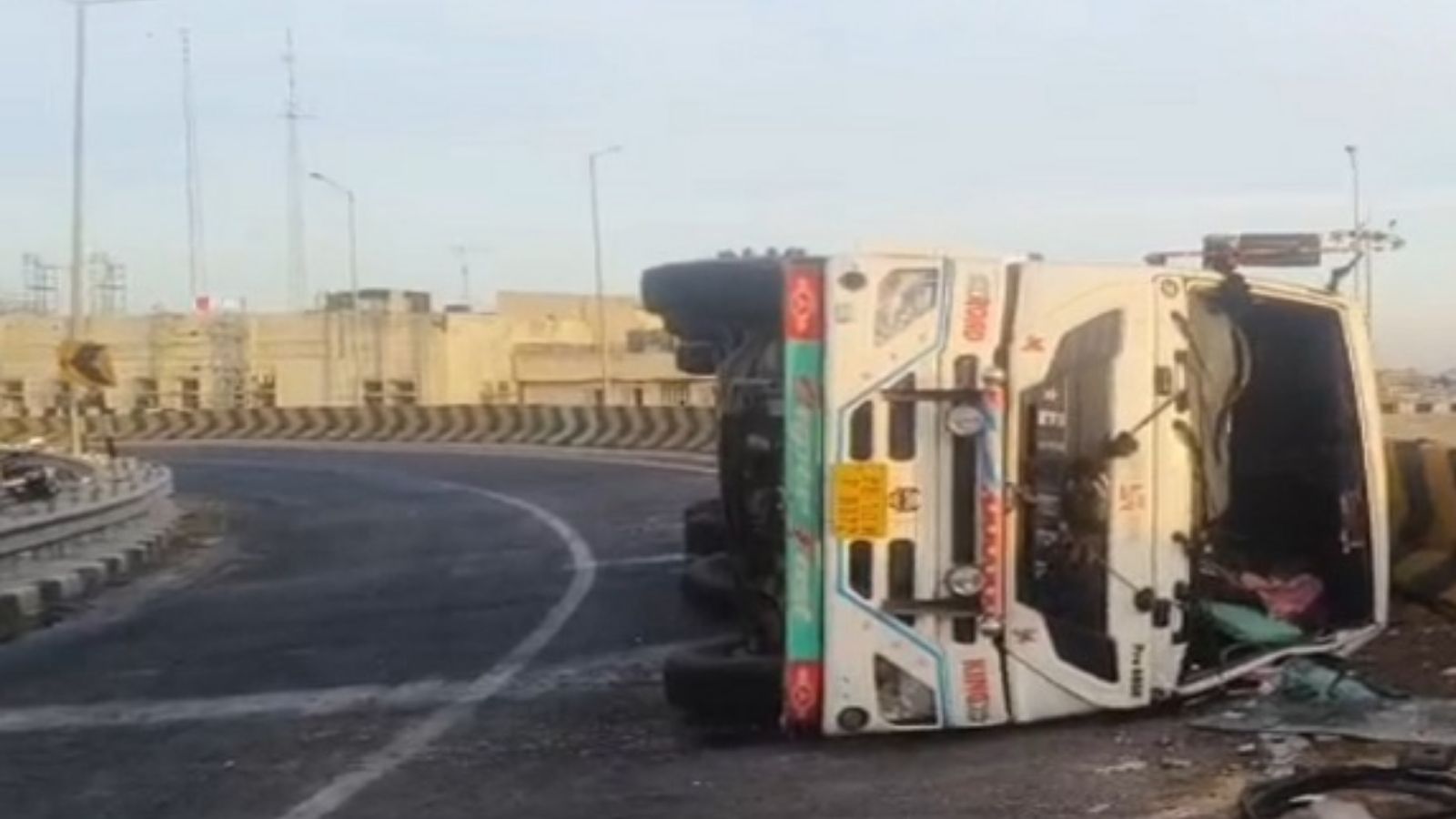 A tanker filled with carbon dioxide gas (CO2) suddenly overturned on the bridge near the bus stand in Ludhiana, Punjab. After which the traffic police reached the spot and called JCB with the help of which the tanker was removed from the road. According to the information, the driver lost balance from the steering, due to which the tanker suddenly lost control and overturned.