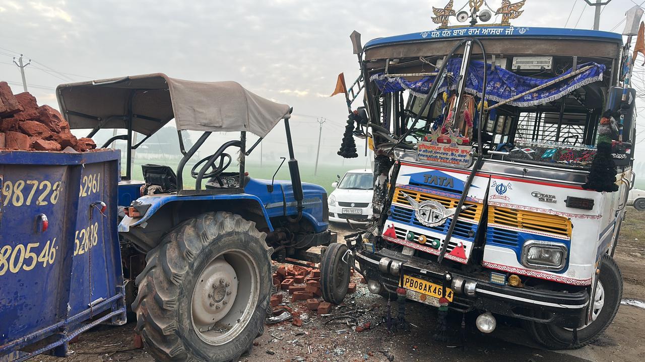There was a fierce collision between a tractor and a bus early in the morning near Chabbewal in Hoshiarpur. 6 bus passengers were injured in this accident. They have been admitted to the hospital. While the bus has also been badly damaged from the front. It is being told that the accident happened because of the person driving the tractor.