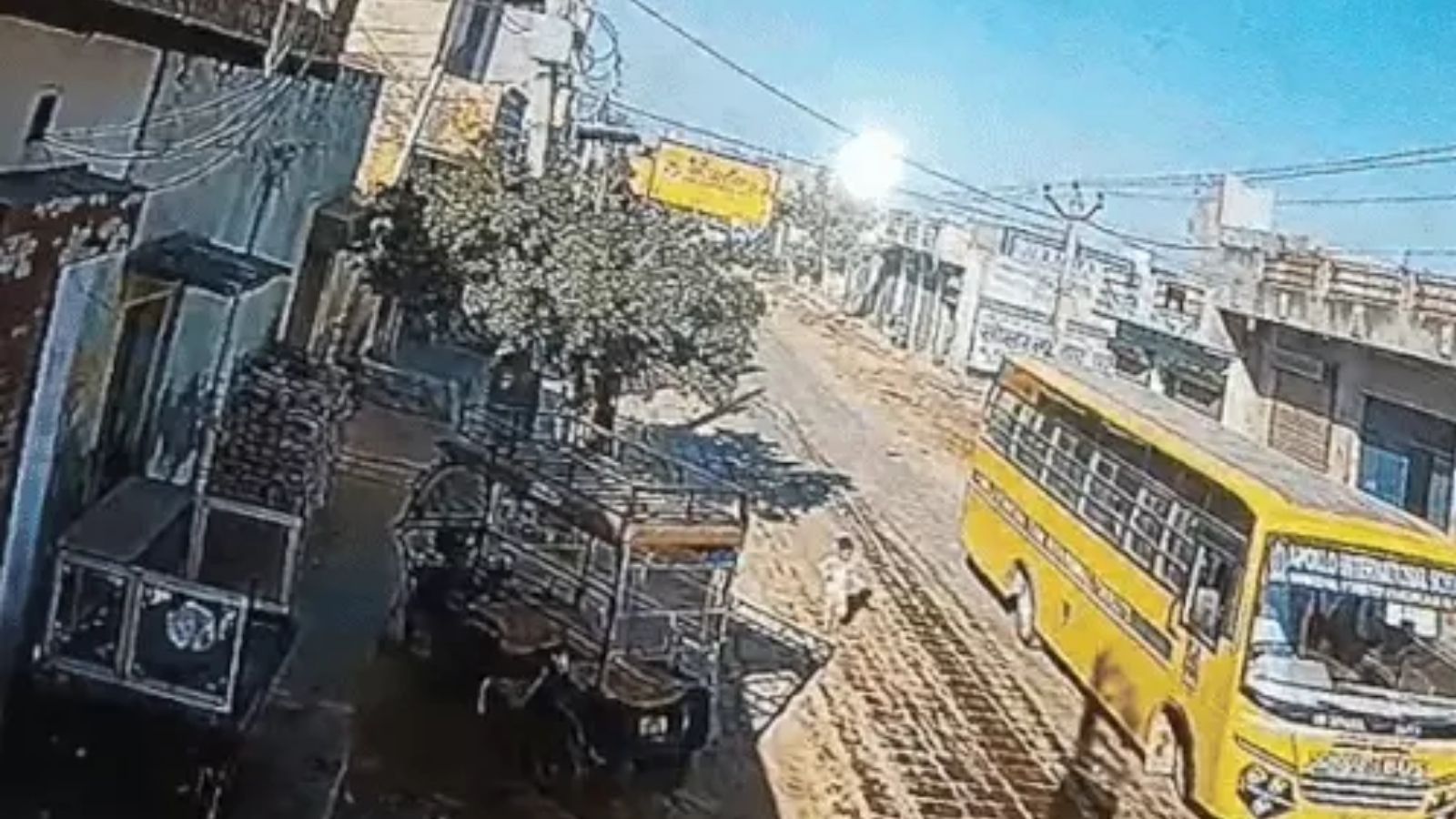 An innocent girl was crushed by a school bus in Sonipat, Haryana. The girl died in this accident. The deceased innocent girl has been identified as Pranjal. It is being told that the deceased innocent girl had come to drop her brother to the school bus and during this time she became a victim of the accident. This incident was captured in the CCTV camera installed nearby.