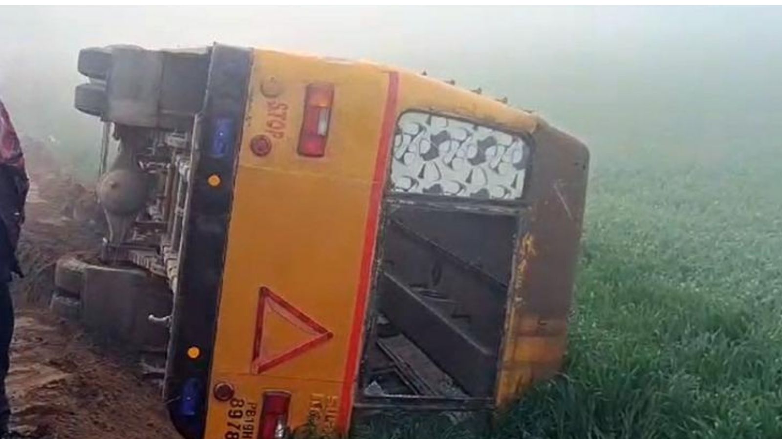 After Firozpur in Punjab, a major accident took place in Barnala. A school bus overturned due to fog near Bhadaur here. According to the information, at around 9 am, the bus of Mata Gujri Public School of Bhadaur was going to school with school children. But due to fog on the way and the trolley coming from the front not having reflectors and lights, the bus overturned in the fields.